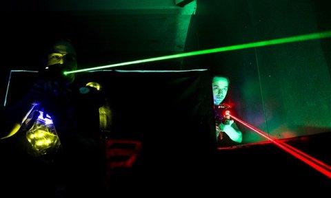 Laservåbnet skyder og rammer præcist udtil 35 m med øjensikkert laserlys!